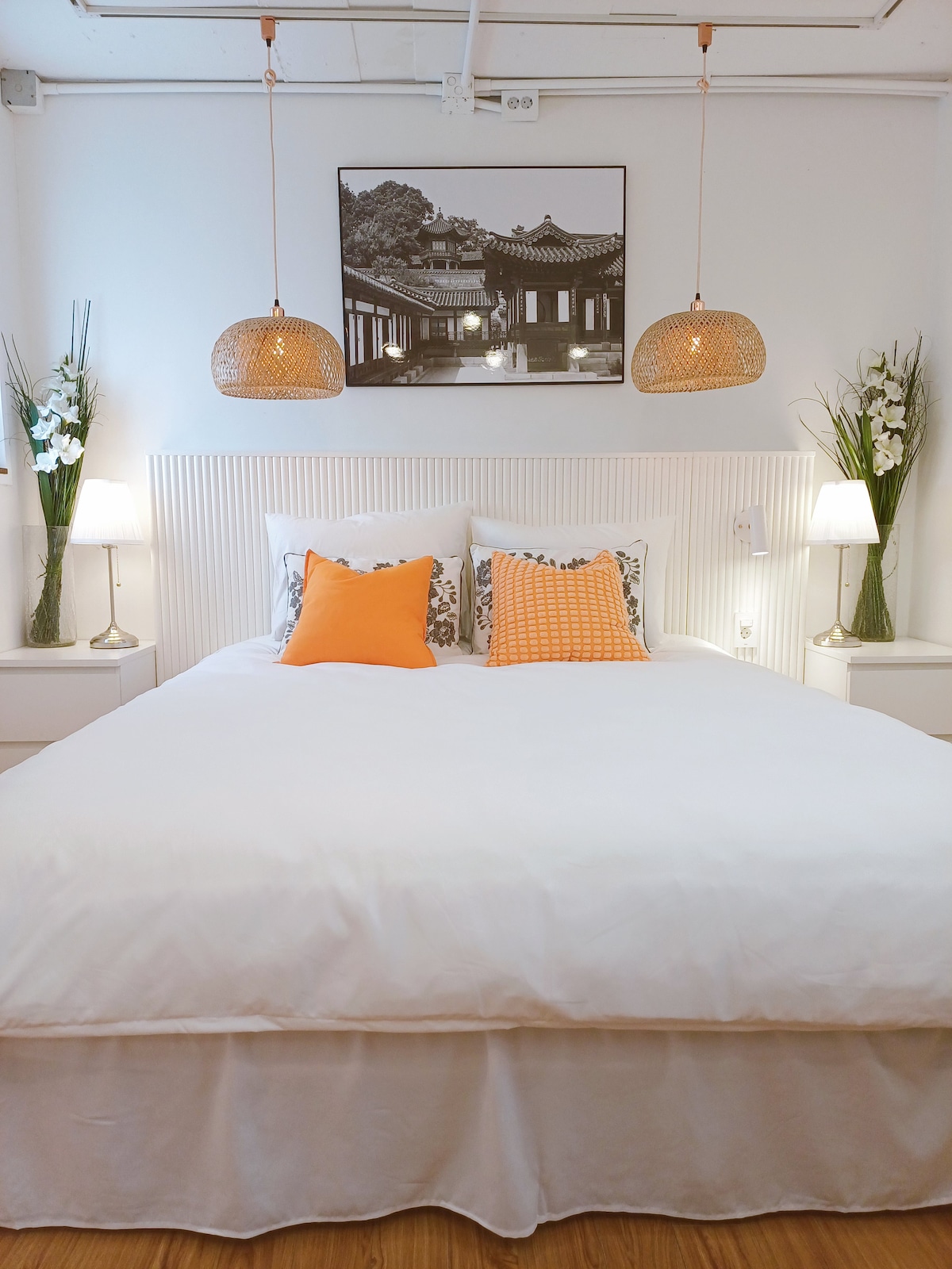 명동 중심부에 위치하면서도 조용한 숙소 에서 편안한 시간을 보내세요. 안젤리나의 숙소는 청결을 최우선으로 생각합니다. 침대는 퀸사이즈와 소파베드가 있으며, 소파베드를 침대로 펼쳤을때는 더블 침대로, 기능에 전혀 손색 없는 편안함을 줄것입니다. 침구는 매번 고온 살균하므로 안심하고 편안한 숙면을 도울 것입니다. 정수기, 세탁기는 물론이며 세탁 세제와 섬유 유연제도 준비되어 있어요. 요리를 해 드실 수 있는 모든 식기와 소금, 후추, 오일도 준비되어 있어요. 아마도 필요한 모든 것은 다 있답니다 간단히 오세요😁