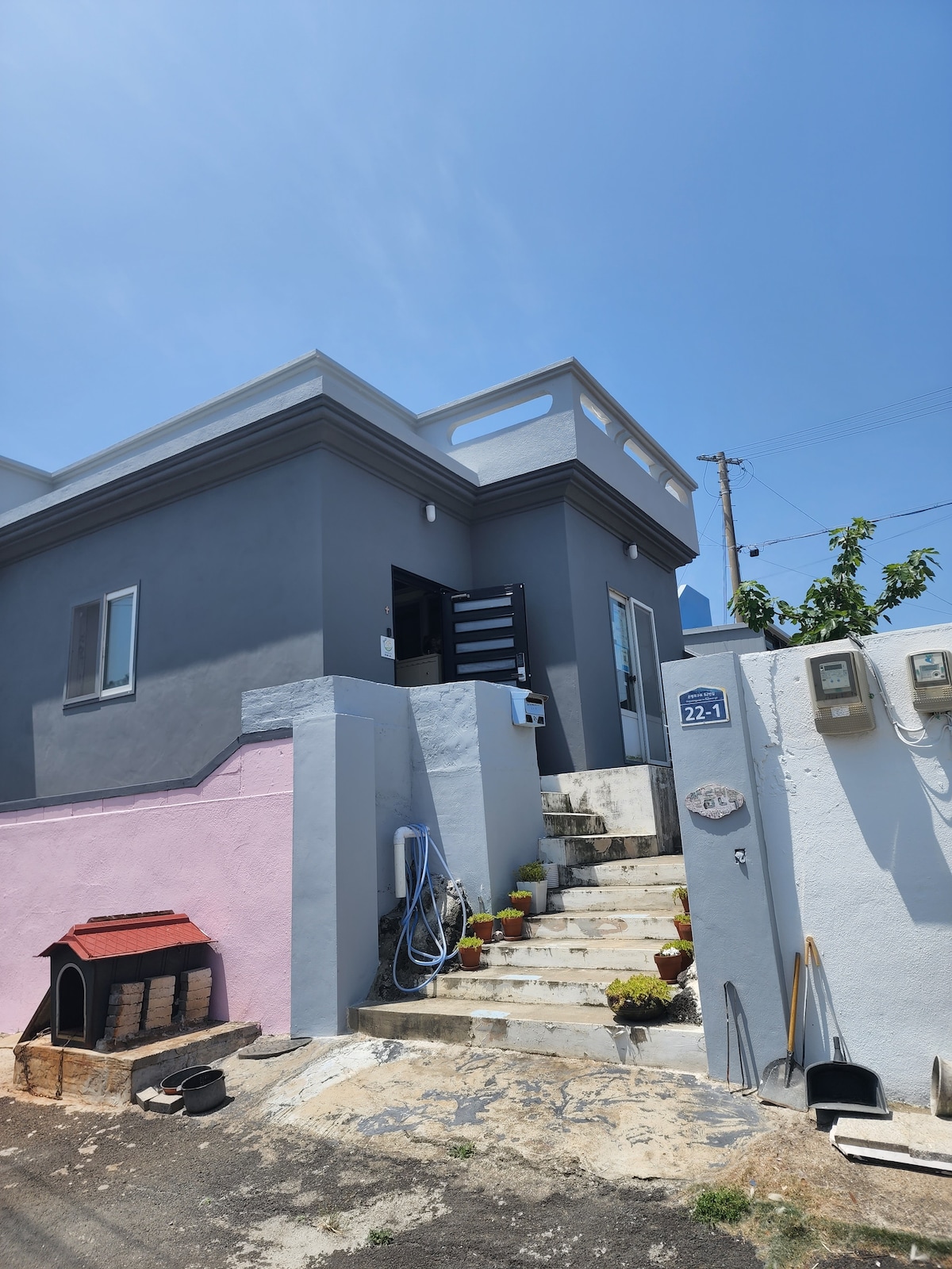 Doine House je majhna hiša, ki se nahaja na vzhodni strani Jejuja. Spomladi 2023 sem po 10 letih Jejuja spoznal pravo zemljišče in zgradil dve majhni hišici. V notranji hiši živi družina doine in oddaja zunanjo hišo. To je majhna hiša z dnevno sobo, kuhinjo in kopalnico v eni sobi, če pa potujete manj kot en teden, boste lahko udobno bivali. Potem upam, da se boste imeli toplo in prijazno v Doijevi hiši. Mešana opozicija! Šel bom peš. – Majhne knjigarne in trgovine (knjigarna, skladišče Jeju, poletna pisarna, Gago Cape Sehwa) - Majhne restavracije: Alizwell (testenine)/ajdova vonj (ajdovi rezanci)/plin Hozadon (sendvič in plin Don) in še več – Srednja šola Sehwa-cho (vadba in sprehod po športnem igrišču) - Knjižnica Dongnuk 5 minut vožnje z avtomobilom - Muzej Haenyeo in naftna tržnica Sehwa (5,10 dni na mesec) - Bijarim in Oreums (Darangshi/Ajungnash/Yongnuni) – Vzhodni nacionalni športni center (telovadnica/notranji bazen) – Blue Sehwa Sea in Starbucks, Nite (ledena pijača) 10 minut vožnje z avtomobilom - Seongsan Ilchulbong in Fritz (kava) ter plaža Gwangchigi – Pristanišče Jongdal in Jimibong, kjer lahko obiščete Udo - Ernestmilk (sladoled)