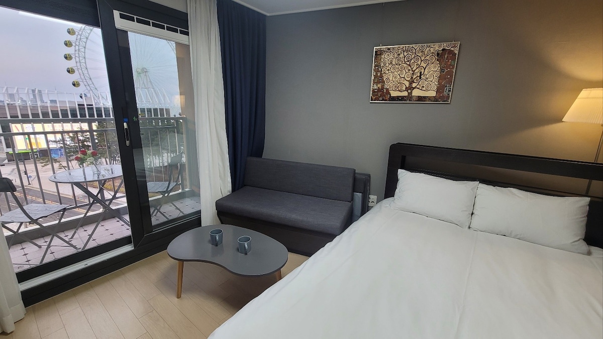 ☆ 객실 리뉴얼 26.2.5 : 부분리모델링, 침구 신설 (서양화 작가님께서 직접 세팅:모던분위기) -전담청소팀이 단독 관리하는 객실 -게스트 수수료 및 별도청소비 없는 객실(셀프퇴실규칙안내) 게스트님의 숙박비용절감을 위해 예약 시 발생되는 에어비앤비 게스트수수료 및 청소비를 호스트가 전액 납부하도록 세팅하고 있습니다. 대신 쓰레기 및 재활용정리 규칙을 준수해주셔야 합니다. [우리 객실 브리핑] 매일아침 바다위로 떠오르는 태양빛을 온전히 감상할 수 있는 예쁜 공간입니다. 매일저녁 달빛으로 물드는 속초바다를 즐기실 수 있는 멋진 공간입니다. 달콤한 파도소리를 자장가삼아 깊은단잠에 빠져들어보세요. 테라스에서 대관람차의 화려한 조명을 배경삼아 나만의 인생한컷 남겨보시면 어떠실까요:) 속초바다와 맞닿은, 우리만의 시간으로 채워지는 로맨틱한 이 곳으로 여러분을 초대합니다♡
