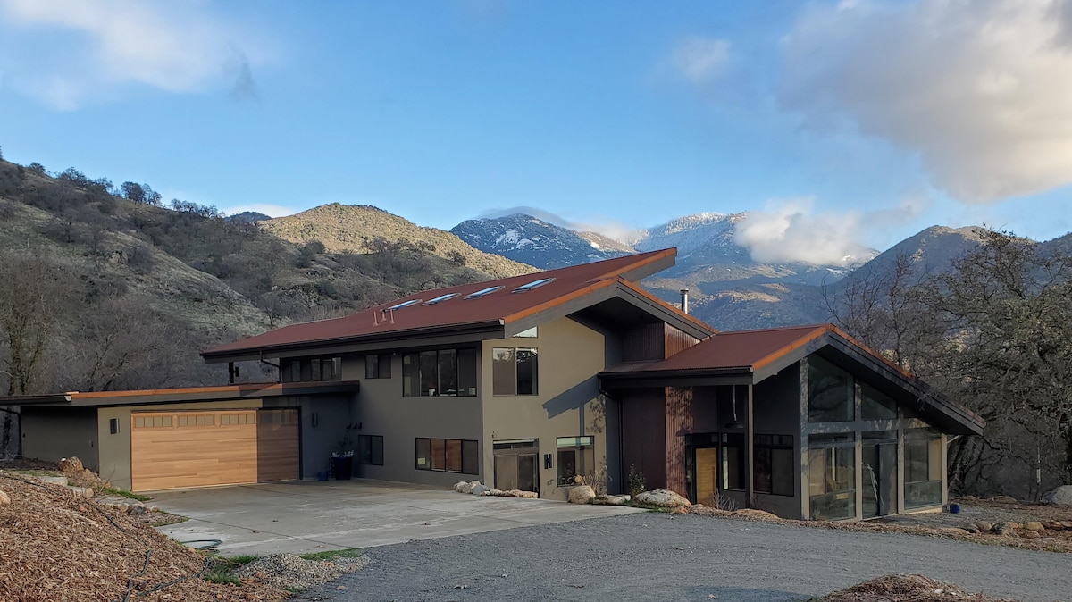 Uživajte v naravi v tem čudovitem arhitekturnem oddihu ob reki! Nastanitve Conscious Nest Retreats se nahajajo ob vznožju Narodnega parka Sequoia (do vhoda v park je le 10 minut vožnje!) in ponujajo osupljiv razgled na reko Kaweah. Udobje doma združujemo s čudovito divjino~ Naša prenočišča so zasnovana tako, da so pristna in trdno zasidrana v energiji starodavnih sekvoj 🌲