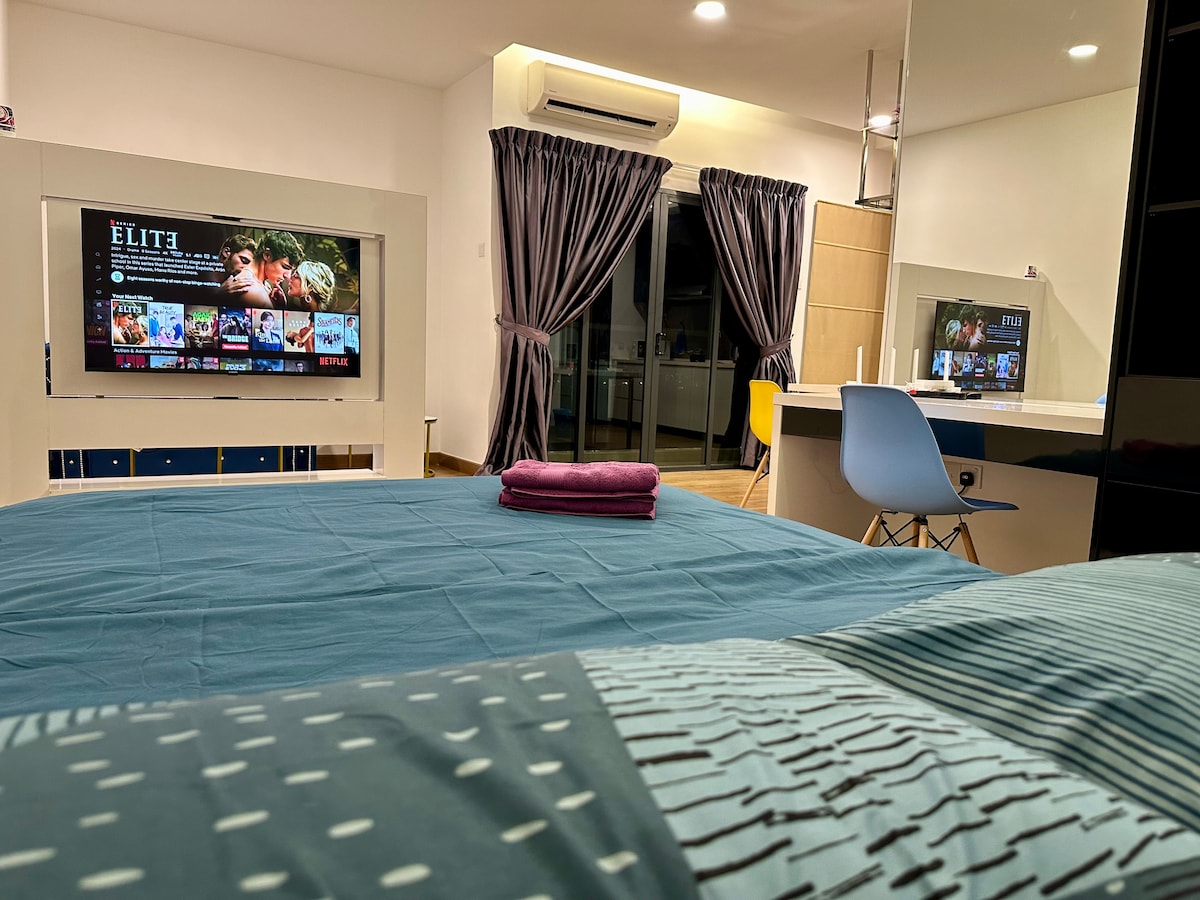 Dobrodošli v Airbnb Ekocheras.To je dvostanovanjska suita v osrednjem poslovnem okrožju Cheras, v osrčju Kuala Lumpurja.LG spodaj je nakupovalno središče Eko Cheras, enostaven dostop do supermarketov, restavracij, kinodvoran itd. 5 minut hoje do MRT Dovolj blizu, da se lahko pripeljete do kateregakoli nakupovalnega središča 10.3 👉KLCC KLCC 12,5 km 16 min👉 MidValley 8,7 km 19-minutni👉 paviljon 7 km. 10 min👉 Lalaport 4,6 km 7 min👉 hitrost 20,8 km 21 min👉 Sunway Lagoon 21,5 km 27mins👉 One U Enota 👉🏻visokega nadstropja s pogledom na KlCC Na voljo v hiši📝 - Wi-Fi, -Nanoleaf luči -Mashell Speaker Predvajalnik z računom Netflix - TV -LG avtomat za vodo (hladna/topla voda)✔️ - Mikrovalovna pečica - Sušilnik za lase - hladilnik, - Stroj za oblačila za mokre suhe začimbe - Mednarodni potovalni pretvornik -2 brisači, 2 brisači za obraz, losjon/šampon za prhanje - Na voljo je brezplačno parkiranje za en avtomobil Prihod je ob 15.00 Odhod ob 12.00