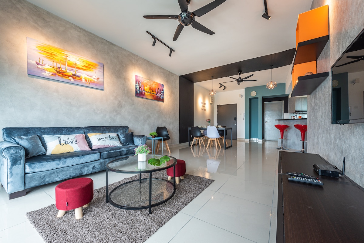 Our Grand Loft is packed with all sorts of amenities and facilities that you'll ever need! We are furnished with premium quality furnitures , entertainment unit (Karaoke) and exquisite finishing that gives not only more value but also your experience staying here. We are located just 15 minutes away from the CBD, 5 stops away from Bukit Bintang (Pavillion) & 6 stops away from KLCC by train. We are strategically located with a 4 minutes covered walk through the mall to the MRT station at lv 1