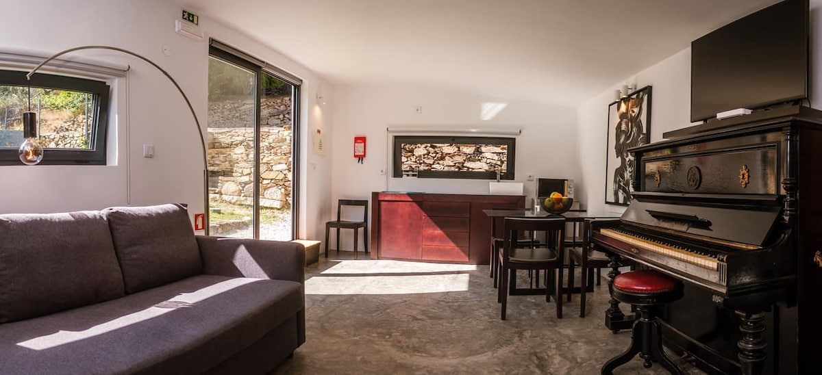 Nahaja se v osrčju portugalske vinske dežele. Uživajte v sodobni vili s 3 spalnicami in osupljivim razgledom na skalnate vinograde doline Douro. Osvežite se z naravnim hladnim bazenom in zunanjo prho. Sprostite se na čudoviti terasi in uživajte v mirnem okolju. Hitri internet Starlink, kamin na drva, plinski žar in čudovit razgled. Do slavne restavracije DOC je le 3 minute vožnje. Vas zanimajo degustacija vin in ogledi? Sporočite nam in z veseljem vam bomo pomagali.
