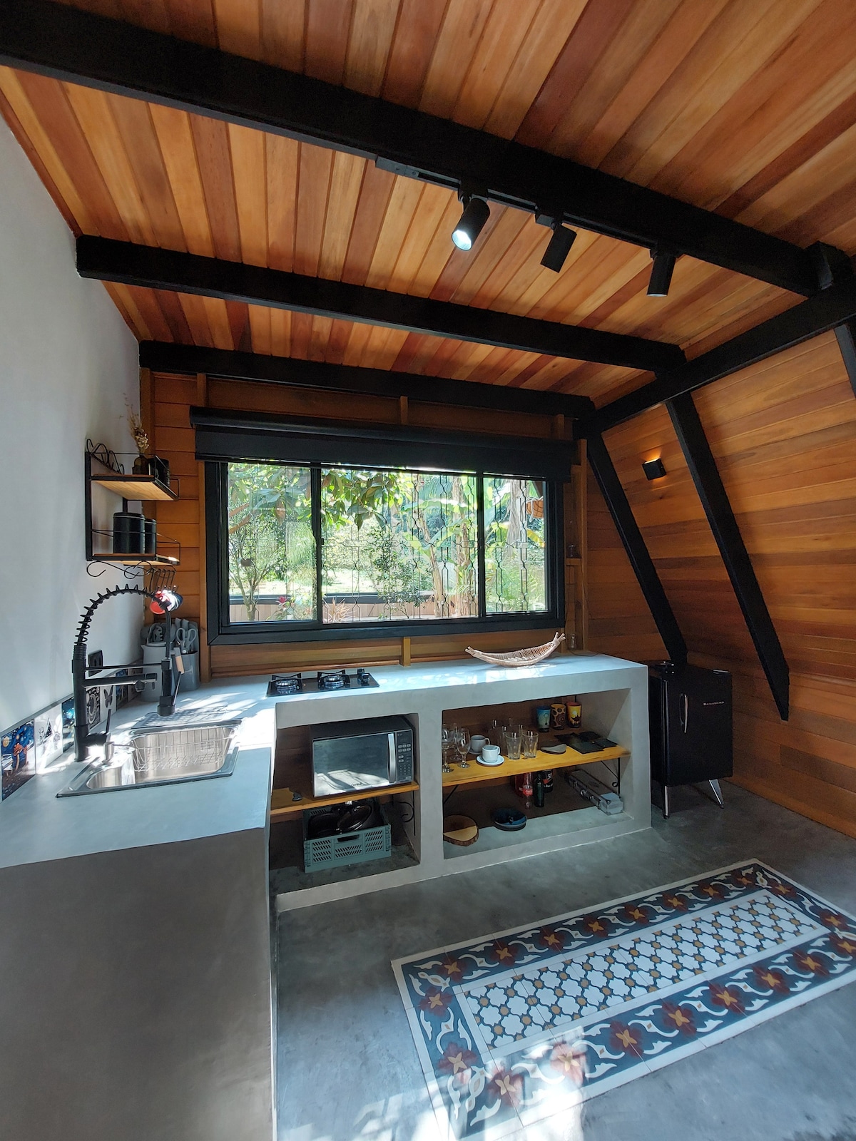 Cabana Encanto da Natureza je 57 m² veliko zatočišče z integriranimi prostori in obilico naravne svetlobe. Ker je zgrajena 2,30 m nad tlemi, ponuja edinstven občutek bivanja v hišici na drevesu, obdani z zelenjem. Idealno za počitek in povezovanje z naravo, ponuja masažno kad za sprostitev in klimatsko napravo za popolno udobje. Kapaciteta: 1 par (2 osebi).