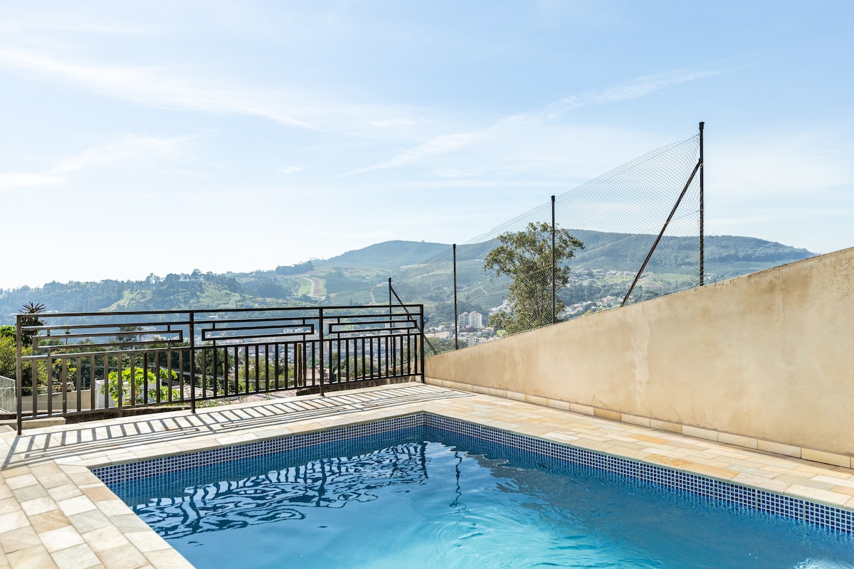 VISTA PANORÂMICA E PRIVILEGIADA PARA O PÔR DO SOL, MONTANHAS, VALE E CIDADES VIZINHAS! POSSUI 01 SUITE COM TV BOX, CAMA DE CASAL E 02 CAMAS DE SOLTEIRO, ARMÁRIOS, FRIGOBAR, PISCINA , CHUVEIRÃO EXTERNO, SALÃO DE JOGOS (MESA DE SINUCA E PEBOLIM), BALANÇOS PARA CRIANÇAS E ÁREA GOURMET COM CHURRASQUEIRA. POSICIONADA PRÓXIMO A TODO COMÉRCIO EM GERAL NA CIDADE. SERÁ UM PRAZER RECEBÊ-LOS EM NOSSO ESPAÇO. VENHA CONFERIR!