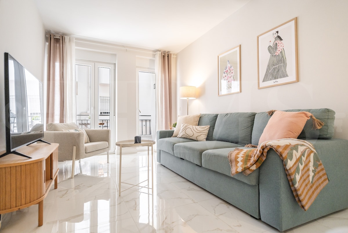 This 2-bedroom apartment is in the heart of Fuengirola, just 7 minutes from the beach. It features an open-plan living area with a fully equipped kitchen, a comfortable sofa bed, and a balcony for enjoying the sun. The master bedroom has a king size bed, and the second bedroom has a queen size bed, both with closets. The modern bathroom includes a shower and washing machine. Perfect for a beach getaway, with easy access to Fuengirola’s top attractions, restaurants, and shops.