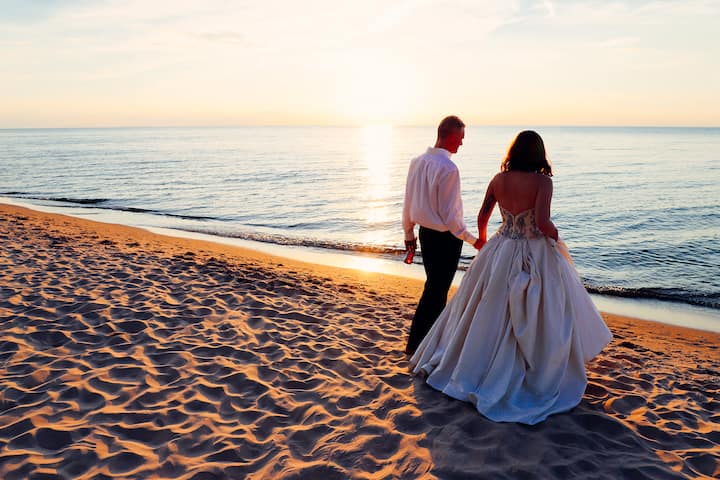 Razkošno fotografiranje na plaži za par, ki se želi poročiti