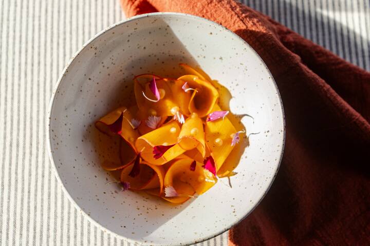 Vsak krožnik je premišljeno zasnovan: ravnovesje okusov, prefinjenost dresure, natančno kuhanje in spoštovanje izdelka.