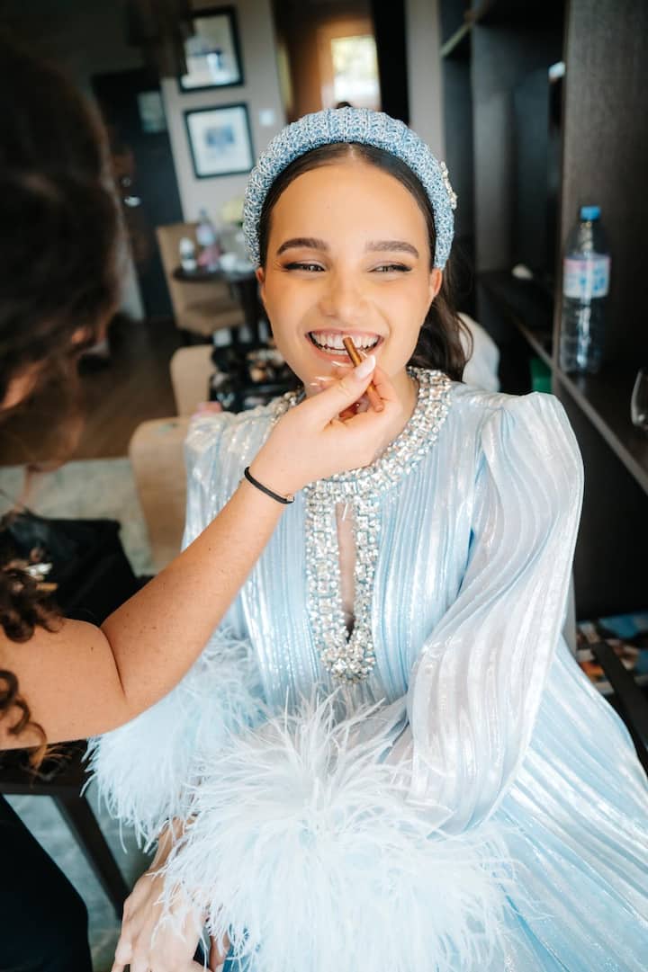 Celovita storitev vključuje ličenje in oblikovanje pričeske za nevesto ter poskusno sejo, da se določi idealen slog pred velikim dnevom.