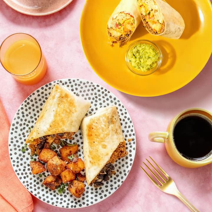 Dostava svežih izdelkov do vaših vrat med 10:00 in 20:00. Dva kuharja, dva drzna pristopa k zajtrku burrito – z Cali Carne Asada Burrito (kuhar Akhtar Nawab združuje zrezek, umešana jajca, sir in krompirjeve kroglice) in Chorizo & Egg Burrito (različica kuharja Joseja Garcesa združuje chorizo, krompir adobo, črni fižol in queso). Vključuje 2 obroka za vsak dan.