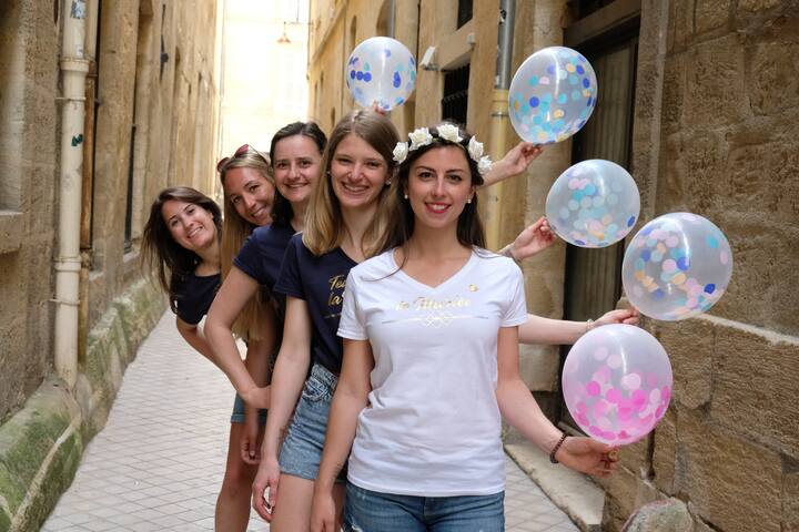 Zabaven fotografski posnetek za dekliščino v Bordeauxu
