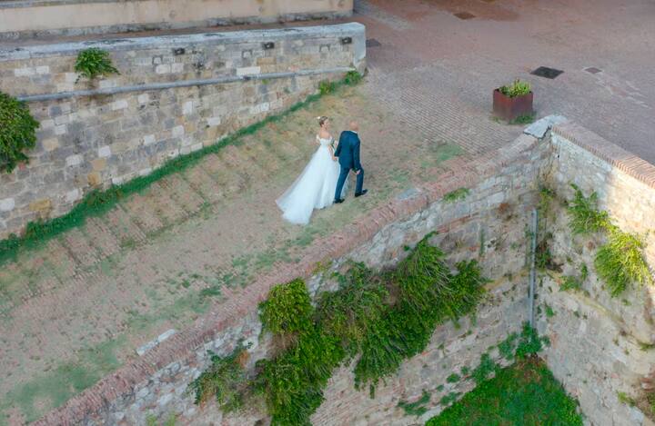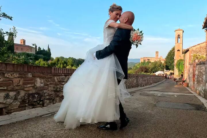 Par me bo pospremil med znamenite zidove grajskega mesta Monteriggioni, kjer bom lahko posnel čudovite fotografije para v visoki ločljivosti.