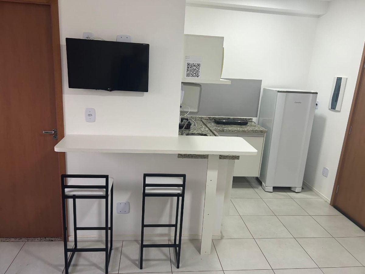 Studio na odlični lokaciji, v središču mesta Araraquara. Popolnoma opremljeno. Internet v stanovanju 600 megas. Z odlično strukturo, z gimnastično telovadnico, polno pralnico, igralnico, Cooworking, polno kuhinjo, kinom, stojalom za kolesa, pokritim parkiriščem. Nahaja se v bližini univerz (Uniara in Unesp), v bližini pa je obsežno komercialno omrežje (supermarketi, lekarne, pekarne, bencinska črpalka). Dobra dostopnost do katerekoli regije v mestu.