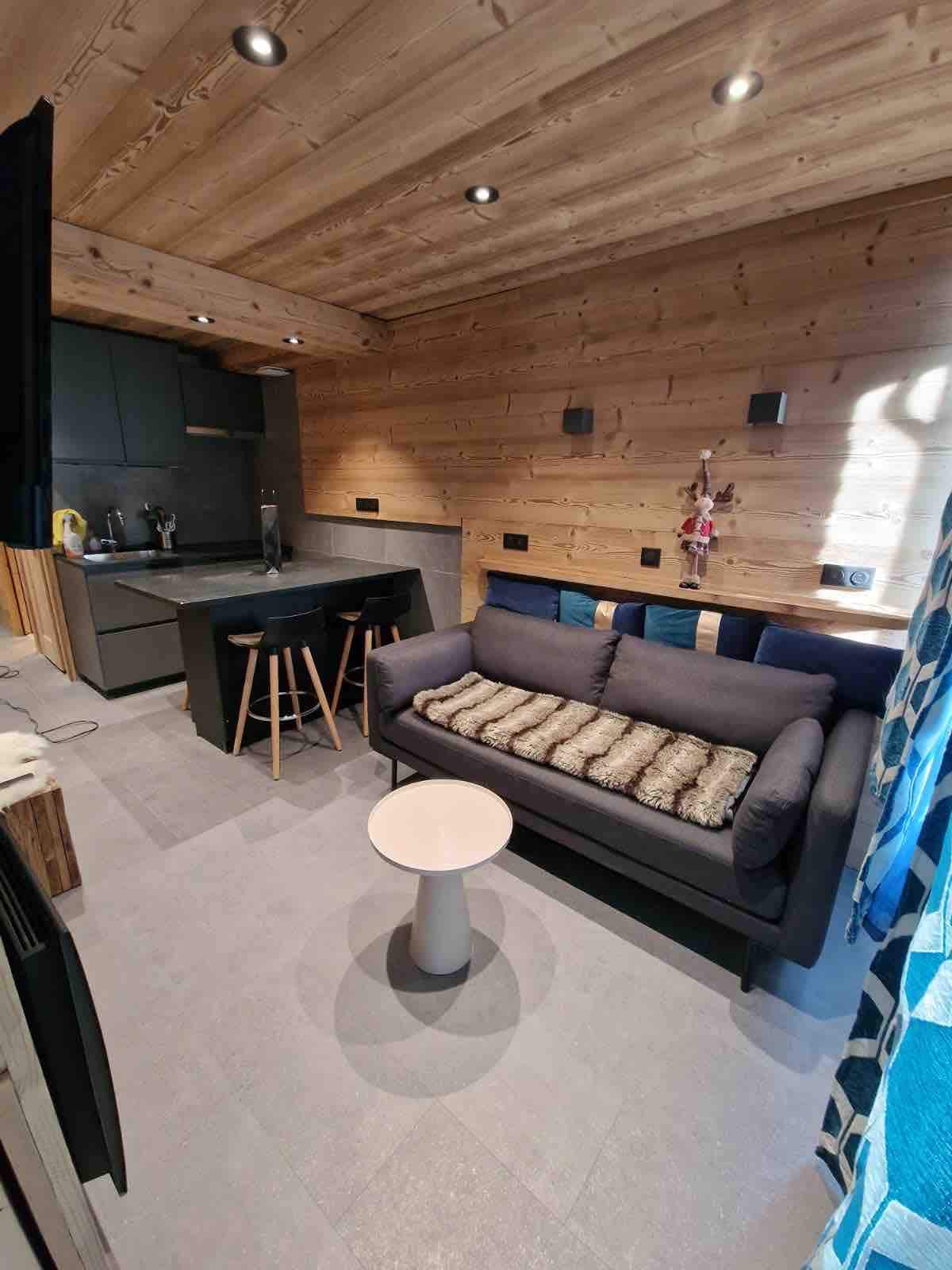 Luxurious 25 m2 studio fully renovated in 2022 (4 guests) is ideally located in the center of the station of Val Thorens ; just at a few meters of all shops, ski schools and rental centers. The residence is located on the main street; however the studio, at the 3rd floor, is oriented to the mountains and so is protected from the noise of the street by triple glazed windows. • REAL Ski in Ski out • Household linen included. The beds are made for your arrival • WIFI • Disney+ , Eng ch. • Ski box