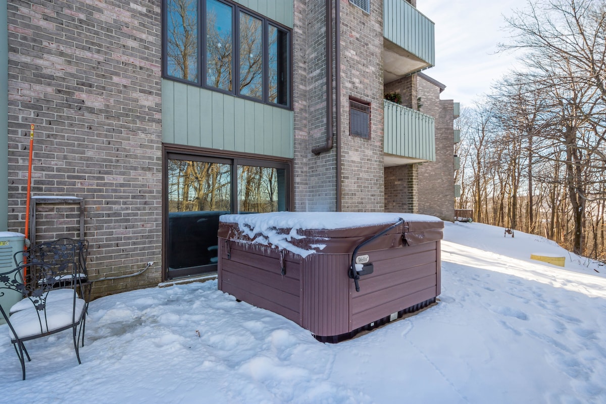 Pobegnite v gore 🌲 Sprostite se v tem udobnem in mirnem prenočišču na koncu vrste – kot nalašč za oddih v dvoje ali potovanje za dekleta. Na terasi boste lahko uživali v mirnem pogledu na gozd in osupljivih sončnih vzhodih. To stanovanje v nižjem nadstropju se nahaja v hribih Laurel Highlands, od koder je le kratek sprehod do avtobusa, ki vozi do letovišča Seven Springs Mountain Resort – idealnega za smučanje, deskanje ali preprosto sproščanje po dnevu na prostem.