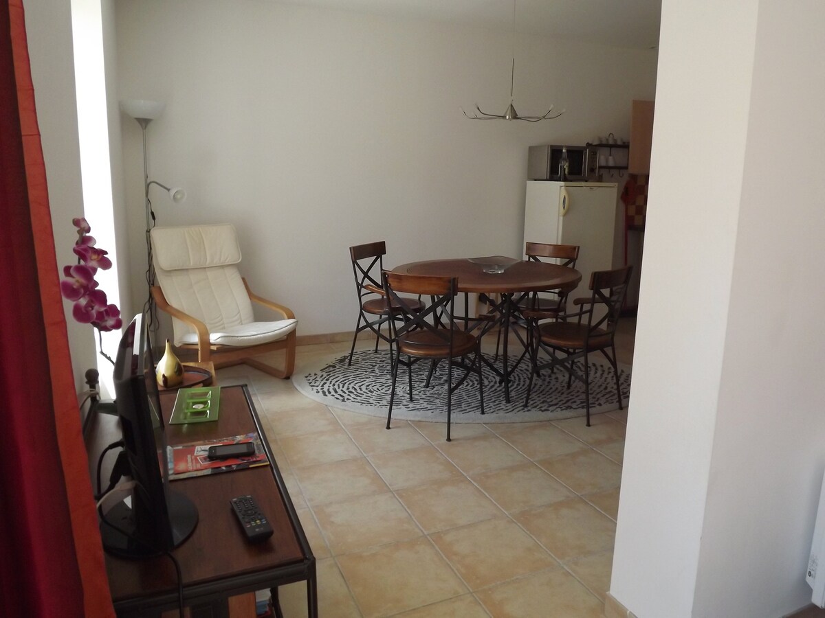 Popolno stanovanje za počitnice v Aveyronu. Idealno se nahaja v vasi Lavernhe, 20 minut od Millauja in 45 minut od Rodeza. 10 minut od trgovin. Stanovanje je sestavljeno iz velike dnevne sobe 45 m2 in spalnice 15 m2 s posteljo(140x190) in odprte kopalnice. Opremljena kuhinja in dnevni prostor z raztegljivim kavčem (140x190). Ločeno stranišče. Številne dejavnosti v bližini (jezero, igrišče,soteske Tarn,Aubrac,Rodez,Millau Pohodništvo