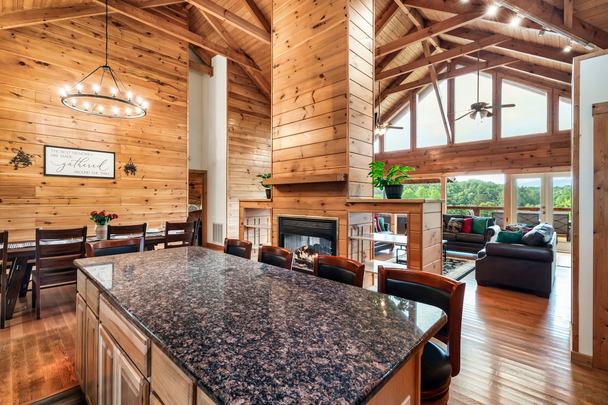 Smoky Mountain Mansion je NEVERJETNA koča s 180-stopinjskim RAZGLEDOM NA območje Smoky Mountain, ki ga je treba videti, da bi lahko verjeli. Ima tri palube s pogledom na bližnje hribe in doline, zaradi česar se boste počutili kot kralj Smoky Mountains. Dve terasi imata zasebne masažne kadi, zgornja terasa pa ima odlično leseno gugalnico. To je fantastičen kraj za jutranjo kavo ali sprostitev in opazovanje sončnega zahoda po dolgem dnevu.