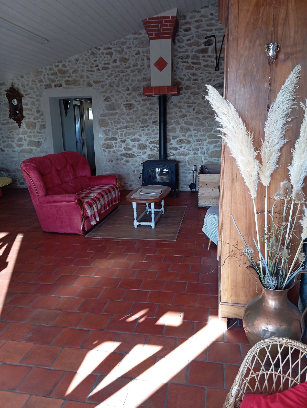 Dobrodošli! Naša prostorna hiša, ki meri več kot 125m ², nudi udobje in družabnost v elegantnem podeželskem vzdušju. S svojimi 3 spalnicami z zakonsko posteljo, raztegljivim kavčem na mezzaninu, prostorno jedilnico in zunanjim pohištvom boste imeli vse, kar potrebujete za nepozabne trenutke z družino ali prijatelji. Ne zamudite edinstvenega doživetja naše obokane kleti s starimi kamni, kjer lahko dostopate do naše zasebne vinske in pivske kleti.