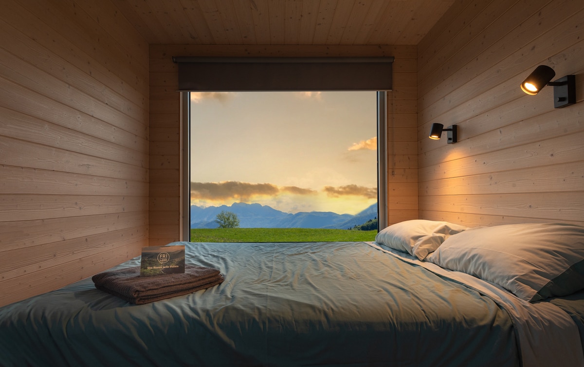 Mini hiška, obdana z zelenjem igrišča za mini golf Valbruna. Hiška je druga na majhnem hribu. V notranjosti boste našli zakonsko posteljo, hladilnik, električni aparat za kavo, opekač, mikrovalovno pečico, grelnik vode in kavo, prigrizke, kruh za toast, marmelade. V kopalnici so prha, umivalnik in stranišče z vgrajenim bidejem. Če pozimi prispete pozno, me obvestite, da bomo lahko vstali zgodaj. ogrevanje.