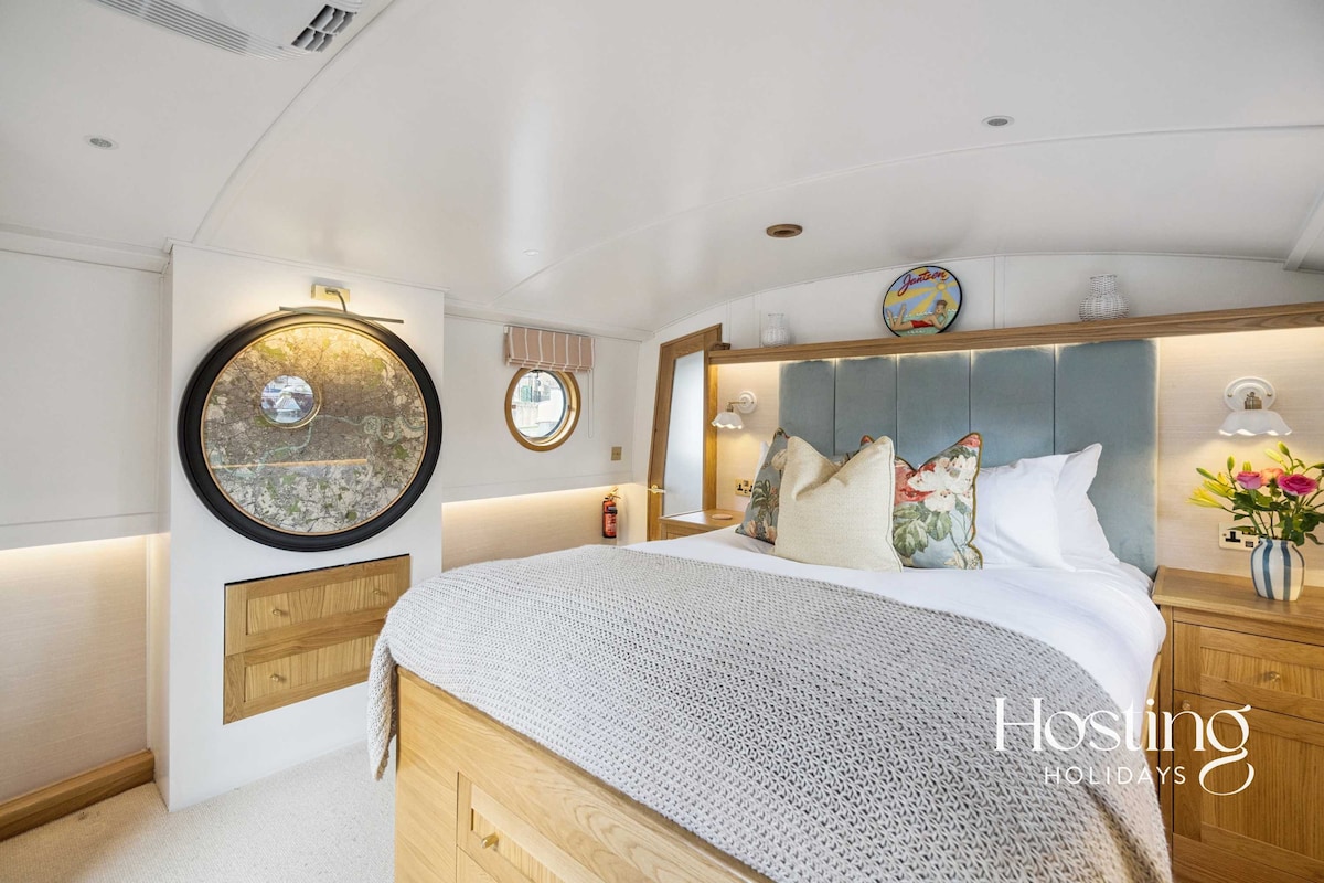 Prenočite na moji zgodovinski popolnoma prenovljeni nizozemski barki v marini Limehouse! Nad palubo, s pogledom na Temzo, je eleganten, sončen salon z udobnim kavčem, naslanjačem in popolnoma opremljeno kuhinjo z jedilno mizo. Pod teraso lahko barka sprejme 8 gostov v štirih kočah z zakonsko posteljo z dvema kopalnicama in še eno ločeno kopalnico. Preživite miren večer v krmarnici ali na dveh zunanjih palubah in občudujte razgled na odprto morje. Veselimo se srečanja z vami!