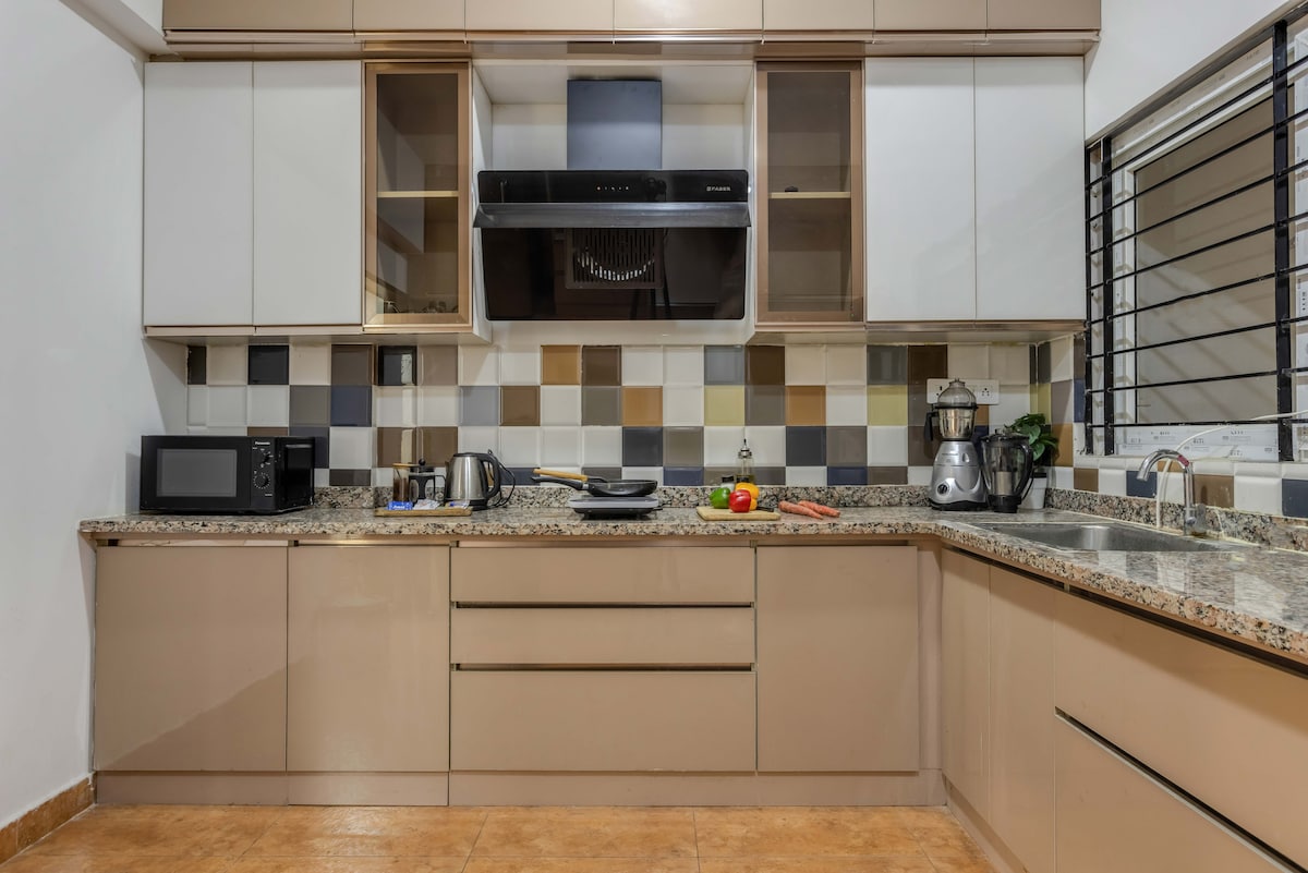 Spacious, and comfortable 3 BHK. Each bedroom is equipped with queen beds, AC , high TC sheets, and soft mattresses. Spacious living area & balcony, have high-speed Wi-Fi and flat-screen TV for streaming & fully equipped kitchen The apartment offers easy access to local shops, restaurants, & attractions. You'll find everything you need just moments away. Book your stay today and enjoy a perfect blend of comfort & style!