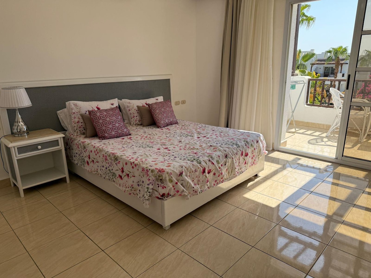 Udobno enosobno stanovanje v osrčju Hadabe, Sharm El Sheikh. Pritličje z 2 balkonoma, hitrim Wi-Fi-jem, klimatsko napravo, TV, raztegljivim kavčem, pralnim strojem, polno kuhinjo. Zavarovana vila s parkiriščem. Sprehodite se do trgovin, restavracij, telovadnice in prevoza. Blizu peščenih in koralnih plaž. Dostop na streho s čudovitimi sončnimi zahodi. Kajenje v zaprtih prostorih ni dovoljeno! Idealno za pare ali samostojne popotnike, ki iščejo sonce in sprostitev.