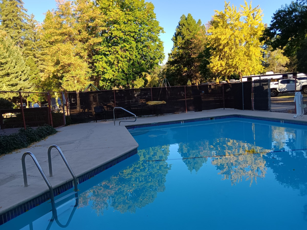 Ta čudovita hiša za goste, ki se nahaja na koncu mirne podeželske ceste tik pred goro Shasta, ponuja miren, udoben in sproščujoč prostor z Mountain Viewom v skoraj vseh smereh. Ročno izdelana notranjost vključuje popolnoma opremljeno kuhinjo in plinski štedilnik, kopalnico z WC-jem, zakonsko posteljo (Queen) in raztegljiv kavč za dodaten spalni prostor. Na voljo je tudi 50-metrski bazen z osupljivim razgledom na goro Shasta, ki je gostom na voljo za uporabo. Morda boste uživali tudi v šepetajočem zvoku vlaka v daljavi.