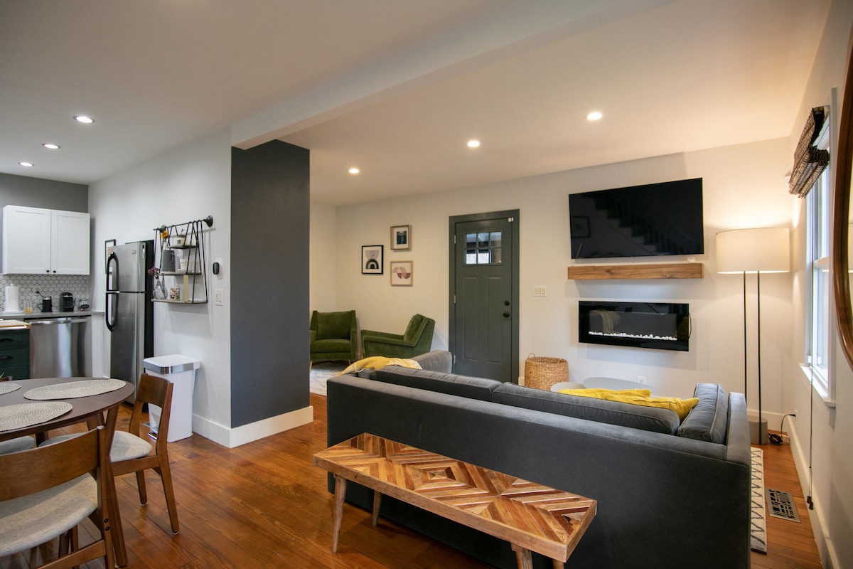 Uživajte v vsem, kar ponuja dolina Hudson iz tega mirnega, elegantnega podstrešja - od doma. Nebeško osvetljen prostor z izvirnimi umetninami in eklektično mešanico MCM in starin vam omogočata, da uživate v lepoti tako znotraj kot zunaj. Zjutraj vas pozdravijo s pogledom na Gunks, zvečer pa nudijo živahne sončne zahode iz udobnega ognjišča. Opazujte padalce, ki plavajo nad glavo, vljudnost po Padalnem ranču po cesti, pohodite po bližnjem rezervatu Mohonk ali pa uživajte v železniški progi le pet minut hoje od vaših vrat.