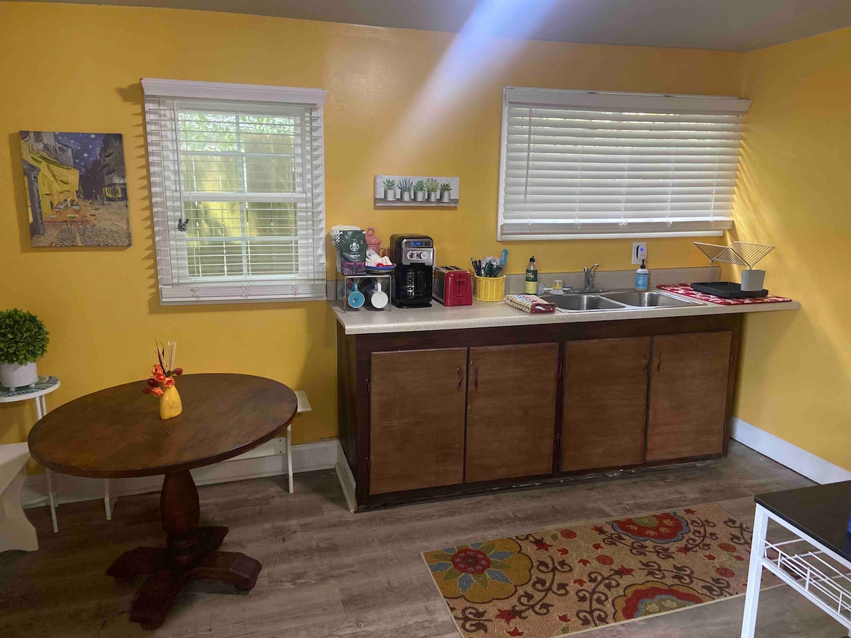 Uživajte v očarljivem 100-letnem samostojnem prenočišču za goste s površino 522 kvadratnih metrov prostora. To prenočišče, primerno za pare ali popotnike, ki potujejo sami, je le nekaj korakov stran od živahne dvorane Crosstown Concourse. Vključuje popolnoma opremljeno kuhinjo, založen kavni bar, prenovljeno kopalnico, hiter Wi-Fi in zasebno parkirišče izven ulice. Glavni prostor je v garsonjeri z zakonsko posteljo in televizijo, opremljeno z Rokujem. Gostitelj je lokalni Memphian.