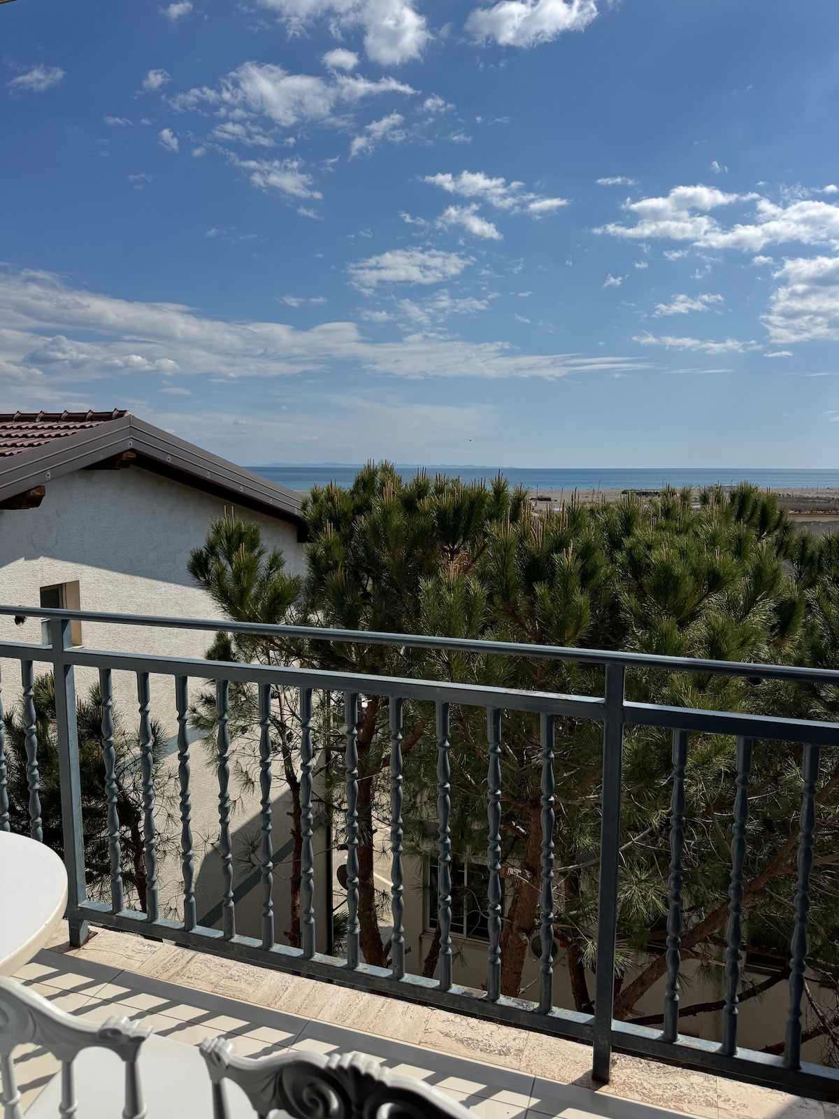 Bell'appartamento in una palazzina di nuova costruzione di fronte al mare. Ideale per una vacanza rilassante a 1 minuto dalla spiaggia. Dotato di un ampio balcone che collega le 2 camere matrimoniali. È presente un parcheggio nelle immediate vicinanze dell'edificio. A pochi passi inizia il lungomare dove troverete il cuore dell'attività turistica della città