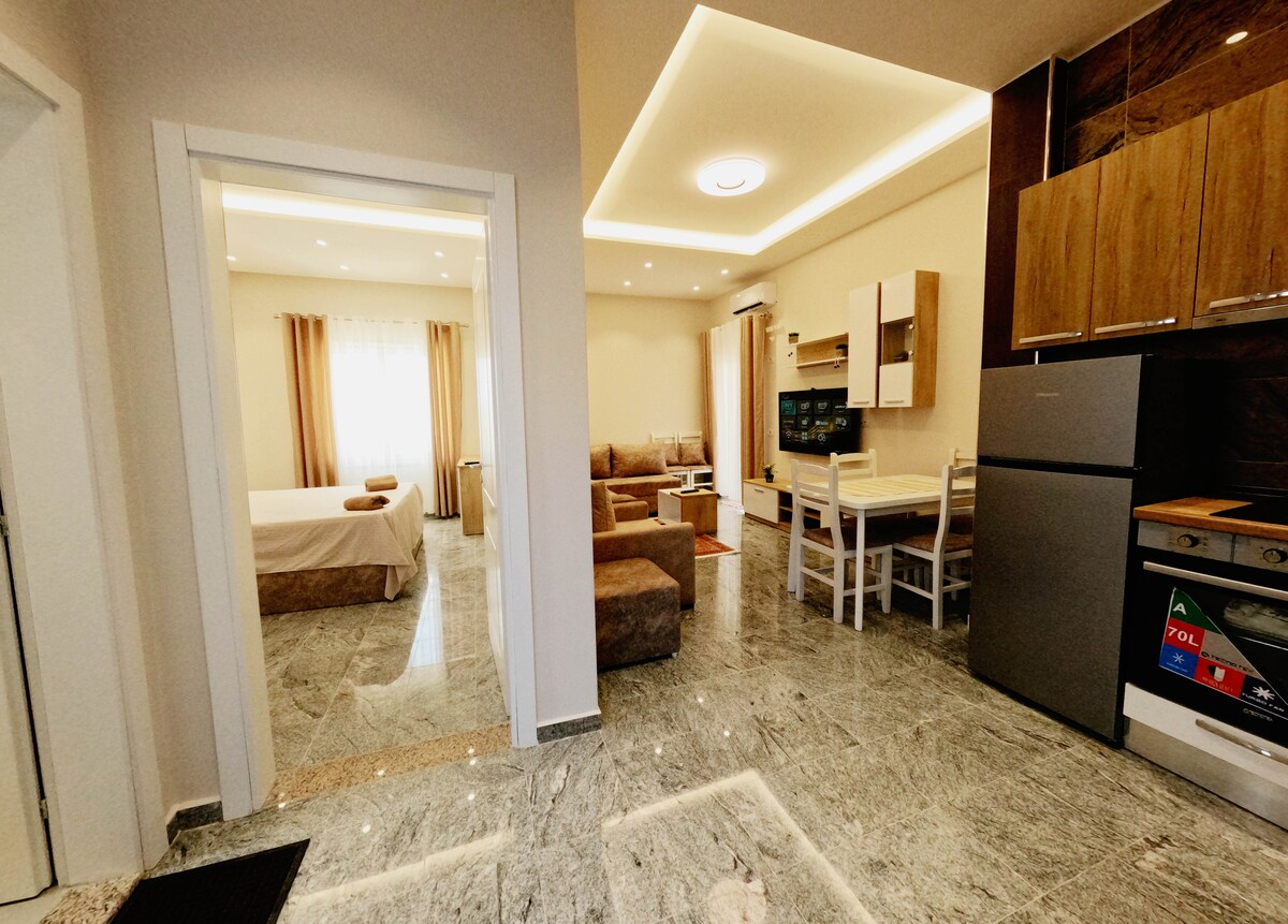 Uživajte v Albaniji v tem novozgrajenem sodobnem prenočišču z 1 spalnico in 1 kopalnico, ki je le nekaj korakov oddaljeno od plaže Tale. To elegantno stanovanje je kot nalašč za družine ali skupine prijateljev, saj ponuja udobje, priročnost in obalni čar. Brezplačen dostop do bazena je v celoti na voljo in vključen v ceno. Uživajte v bivanju ob plaži v ekskluzivnem letovišču Talea Coast Resort, od koder boste zlahka dostopali do lokalnih znamenitosti. Rezervirajte prenočišče tik ob plaži in preživite nepozabno bivanje ob morju.