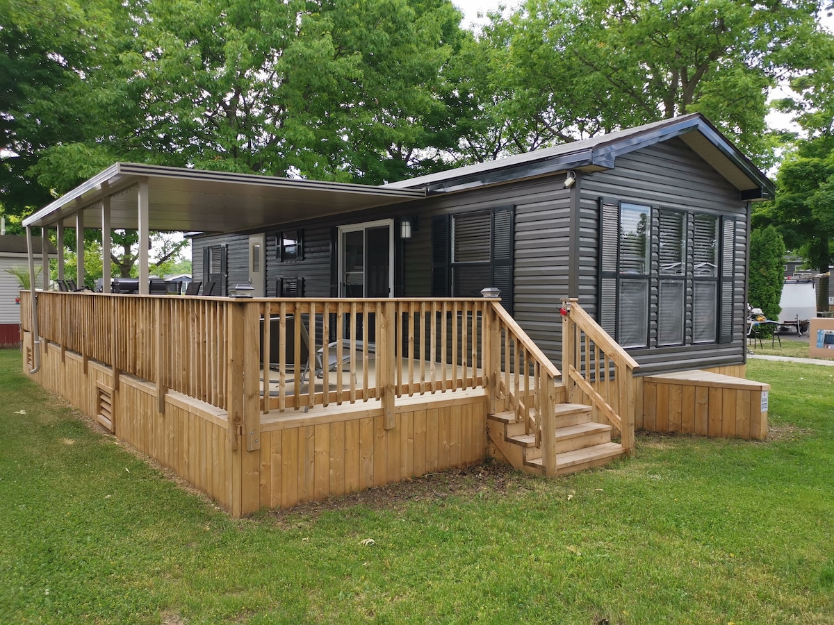 Pobegnite v priljubljeno letovišče Sherkston Shores Resort z družino ali prijatelji in si privoščite zabaven oddih. Nahaja se v mirnem predelu parka, vendar blizu vse opreme, vključno z vodnim parkom, nakupovanjem in dostopom do plaže. Uživajte v jutranji kavi na naši veliki pokriti terasi in raziščite park v našem vozičku za golf! Hiška na deželi je opremljena z vso kuhinjsko posodo, vključno s posodo, kuhinjsko posodo in aparatom za kavo keurig. Za uporabo je na voljo tudi propanski žar. S seboj prinesite svoje osebne predmete in uživajte.