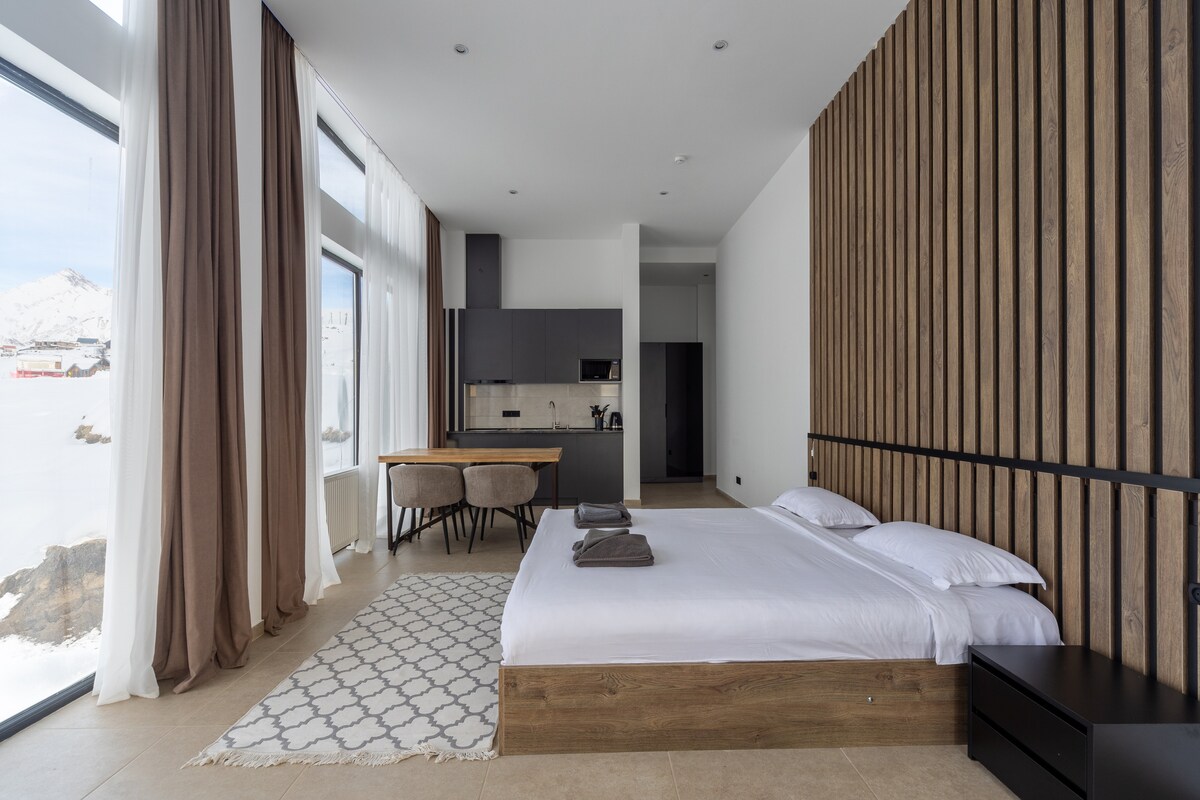 აპარტამენტი იდეალური მდებარეობით ახლოს საბაგიროებთან, რესტორნებთან და ზამთრისთვის საჭირო ყველა სხვა აქტივობასთან. Our cozy apartment in New Gudauri is now open for daily rentals for the new ski season! It offers an ideal location—just steps from ski lifts, restaurants, and all essential winter activities. The apartment is warm, modern, and fully equipped for a comfortable stay. Perfect for couples, friends, or families who want to enjoy Gudauri’s winter vibe.