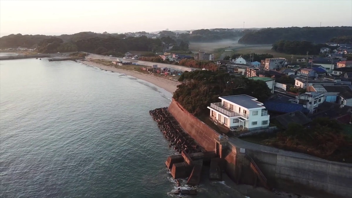 [30 sekund do morja] Dobrodošli v vili tik ob oceanu, kjer vas lahko pomirijo zvoki valov in sončni zahodi. V prenočišču lahko biva do 11 oseb.Prostorna hiša v slogu brunarice je kot nalašč za družinske počitnice in študentske skupine. Uživajte v izjemnem času v zasebnem prostoru tik ob oceanu. ★ Odlična lokacija z razgledom: neposreden dostop do plaže z lesene terase.Poleti lahko uživate v ribolovu, igri v morju in kopanju. ★ Masažna kad z razgledom: blaženi trenutki v kopeli ob sončnem zahodu. ★ Žar in taborni ogenj: pogovorite se ob ognju, medtem ko poslušate zvok valov. ★ 110-palčni kino: dnevna soba se ponoči spremeni v kino.Uživajte v filmih in igrah na konzoli Switch 2. ★ Uživajte v deževnih dneh: družabne igre, projektor, otroške igrače.Uživate lahko tudi v deževnih dneh. ★ Popolnoma opremljeni prostori: Wi-Fi7, pralni in sušilni stroj, kuhinjski aparati, brezplačno parkiranje.