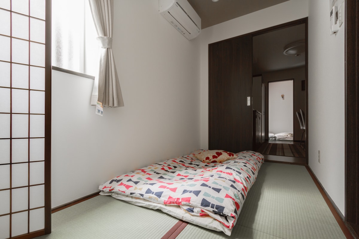 大阪城公園、京都へもアクセス抜群。 難波・天王寺・通天閣まで10分圏内、関西空港から乗り換えなし約40分。 99㎡の一軒家をまるごと貸切で、最大10名までゆったり滞在できます。 🏠ホテルでは絶対に味わえない"家ごと借りる"体験を。 🍴フルキッチンで自炊もOK、洗濯機完備で長期滞在も快適。 ♨️徒歩1分に銭湯・サウナあり——日本の「銭湯文化」をぜひ体験してみてください 💪さらに珍しいトレーニングルーム付き——旅先でも体を動かしたい方に最適です。 【こんなグループに選ばれています】 ・家族旅行(ベビーベッド・ベビーカー完備) ・友人グループ・卒業旅行 ・スポーツ観戦(京セラドーム車20分) ・ワーケーション・長期滞在 駐車場1台無料。車でのアクセスも万全 【主な設備】 ↓ 寝室3室(最大10名宿泊可) ♥トレーニングルーム(ジム代わりに使えます) ♥無料駐車場1台 ↓ベビーベッド・ベビーカー無料貸し出し ↓フルキッチン・洗濯機完備 ↓高速Wi-Fi 【アクセス抜群】 ・岸里玉出駅(南海線)徒歩3分 ・岸里駅 徒歩7分 ・天下茶屋駅 徒歩12分