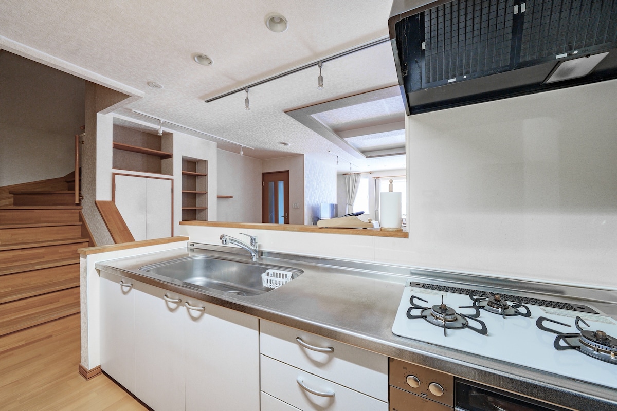 Na novo prenovljena! Nahaja se v Sumikawi, Minami-ku, Sapporo in enodružinska hiša z leseno strukturo japonskega dvorišča!Zelo tehnična zasnova združuje tradicionalno in sodobno japonsko dekoracijo z novicami Hokkaido News in japonskimi revijami! Enodružinsko prenočišče ima dve nadstropji in čudovit vrt z opremo.3 zasebne spalnice za 7 oseb, 2 zahodni sobi v drugem nadstropju, 1 soba v japonskem slogu v prvem nadstropju, prostorna, udobna in urejena soba z veliko sončne svetlobe.Kopalnica in stranišče sta ločena in imata veliko zasebno kuhinjo.Velika dnevna soba z zahodnim in japonskim slogom, z vrhunsko leseno veliko jedilno mizo in 360-stopinjskim vrtljivim stolom, 50-palčnim LCD televizorjem visoke ločljivosti.Steklo od tal do stropa je zasnovano tako, da gleda na dnevno sobo in drugo nadstropje, jutranje sonce pa sije na steni steklene zavese na vzhodu, kar kaže, da sta celoten vhod in dnevna soba zelo prostorna in svetla! Moje prenočišče se nahaja v mirnem stanovanjskem območju, zato je kot nalašč za prijatelje ali družino, ki potujejo skupaj, zato je to najboljša izbira za najem ene družine!Življenjsko okolje je zelo priročno za nakupovanje.Postaja podzemne železnice, letališka avtobusna postaja, trgovina, 2 velika supermarketa, lekarne, restavracije, izakaya so oddaljeni 5 min hoje, podzemna železnica Namboku Line pa je oddaljena 12 minut.To je zelo blizu stadiona Sapporo Dome, opazovalnega palube Sapporo Sheep Hill, univerze Sapporo. Ta hiša je najeta od 3 oseb, zato za vašo varnost in zasebnost nihče drug ne bo ostal za vami!Tu sem, da vam pomagam.Veselim se sodelovanja z vami.Veselimo se vašega bivanja in doživetja!
