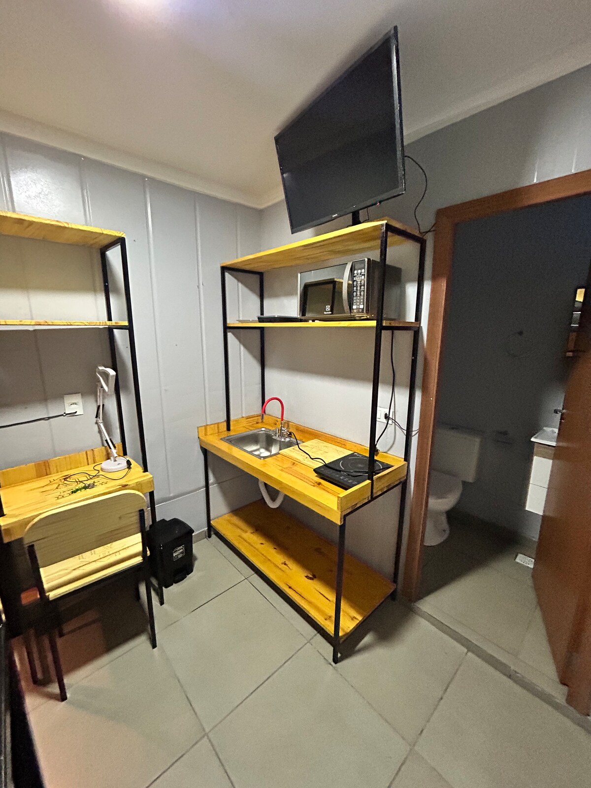Oblikovalski studio, ki so ga zasnovali arhitekti, v osrčju Curitibe. Popolnoma opremljeno s sodobnim dekorjem, vrhunskimi aparati in brezhibno dodelavo. V prenočišču lahko bivajo do 3 osebe, saj je na voljo zakonska postelja in enojna postelja. Popolnoma opremljena kuhinja, hitra povezava Wi-Fi, pametna televizija in klimatska naprava. Idealno za delo ali prosti čas. Privilegirana lokacija v središču, blizu vsega. Uživajte v vrhunski izkušnji sprejemanja gostov v edinstvenem in prefinjenem prostoru. Prha je popolna😍