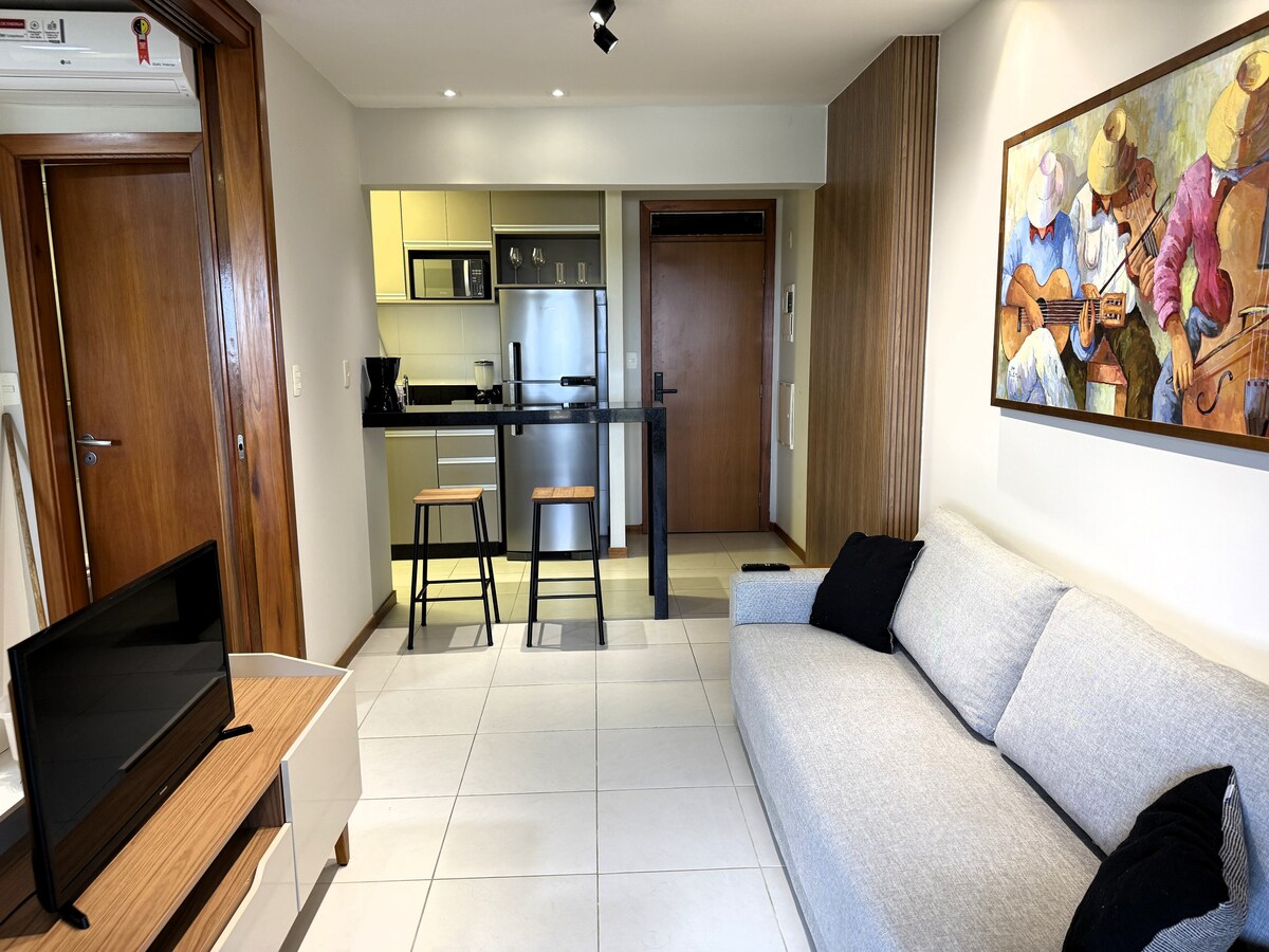 Apart Hotel 45m² recém reformado com TV de cinema