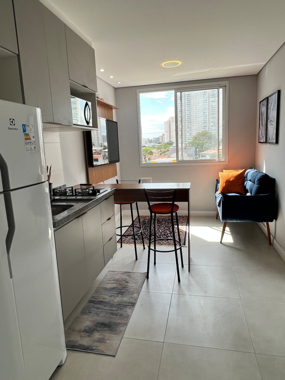 48m ² integrirano udobno stanovanje (spalnica, dnevna soba, kopalnica in kuhinja), z balkonom in privilegirano lokacijo v soseski Mooca. Enostaven dostop do bližnjih restavracij, tržnic, lekarn in trgovin, od katerih so nekatere na isti ulici. Odlična možnost za individualna bivanja ali bivanja v paru, za počitek ali delo. Stanovanje ima več možnosti za prosti čas in nudi vso varnost, ki jo potrebujete za mirno bivanje.