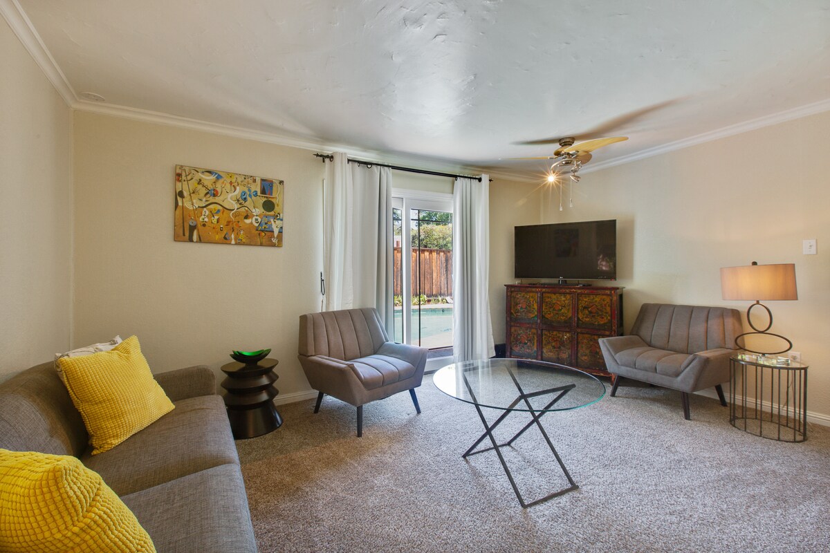 Ta svetla in sončna hiša za goste se nahaja v mirni soseski v osrčju Palo Alta; v bližini Stanforda, Alphabet, Meta, Apple. Ta zasebna hiša za goste ima udobno zakonsko posteljo; polno kuhinjo z izborom gurmanske kave; udobno bivanje z udobnim kavčem (raztegljiv kavč), kjer se lahko sprostite, pa tudi delovni prostor z ergonomskim stolom in hitrim brezžičnim internetom. Samostojni vstop ob prihodu.