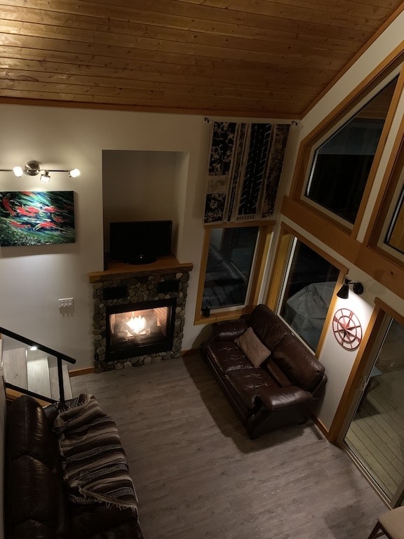 **Zasebna namestitev ob jezeru ** Masažna kad s slano vodo **Osupljiv razgled **Sproščujoče vzdušje s plinskim kaminom **3-sobna kopalnica 2 kopalnici! ** Velika dnevna soba ** Ognjišče z brezplačnim drvom, ko so požari dovoljeni ** Pralni/sušilni stroj ** Brezplačni kajaki, deska za veslanje, kanu, pedalboard poleti ** Oddaljenost od pešpoti do sezonskih restavracij v marini, trgovine z živili, delikatese, trgovine z alkoholnimi pijačami
