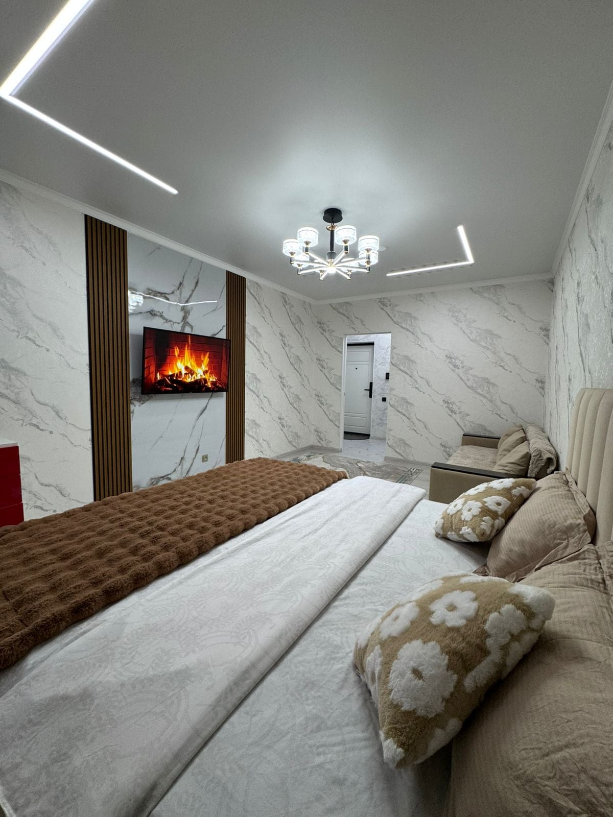Dobrodošli v elitnem stanovanju, ki se nahaja v stanovanjskem kompleksu Al-Farabi v bližini trga. Stanovanje je sveže prenovljeno z vsemi potrebnimi potrebščinami za dolgo in udobno bivanje: vse naprave, hiter internet Wi-Fi, kabelska televizija, spalni prostori 2, na voljo je tudi 2-posteljni kavč za goste, vse potrebno pohištvo, posoda za kuhanje in prehranjevanje.