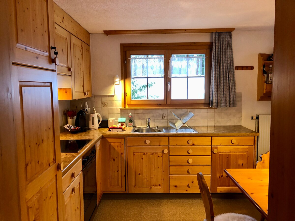 Very tastefully and lovingly furnished. Cozy atmosphere for a nice get-together and best recreation. Unique indoor pool (20m) + 2 small saunas in the house. Large ski room, underground parking and direct bus to the ski station in front of the door. 3 single beds in the bedroom and lovely, folding 2x1 double bed in the living room. Wake up with a view of the mountains! TV / highspeed WLAN. Bathroom with bath/shower and large mirror cabinet.