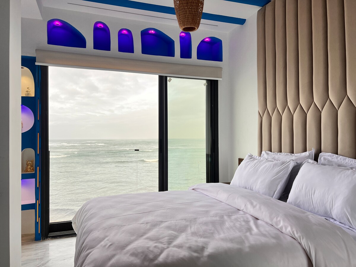 Ce studio en première ligne offre une vue frontale et totalement ouverte sur l’océan, sans vis-à-vis, avec une immersion directe face aux vagues. Les larges baies vitrées prolongent naturellement l’espace intérieur vers la mer, créant une sensation rare d’être posé au-dessus de l’eau. Situé au 3ᵉ étage avec ascenseur, l’appartement bénéficie d’un calme appréciable et d’une luminosité continue tout au long de la journée.