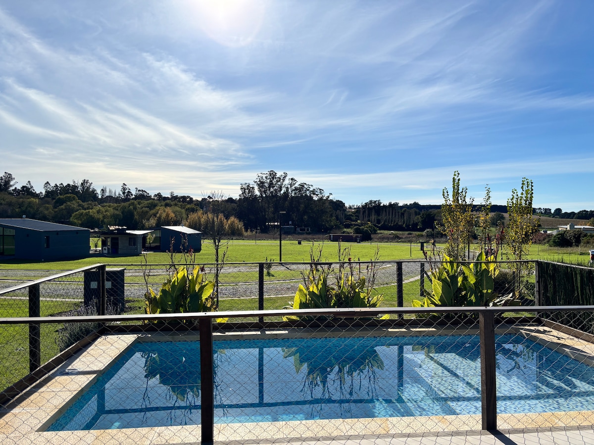 Rodeada de 7 hectáreas de naturaleza, es el lugar ideal para descansar y desconectar a solo 22 km de Mar del Plata. ✔ Mini piscina privada con jets ✔ Chiringuito con parrilla individual ✔ Brunch campestre incluido cada mañana ✔ Aperitivo en la hora dorada con vista abierta ✔ Netflix, Paramount Disney ✔ Una noche de campo con cena casera a la cacerola o fondue Cada detalle está pensado para tu descanso: sábanas de hilo bordadas, vajilla vintage y la serenidad de un campo con vista 360°.