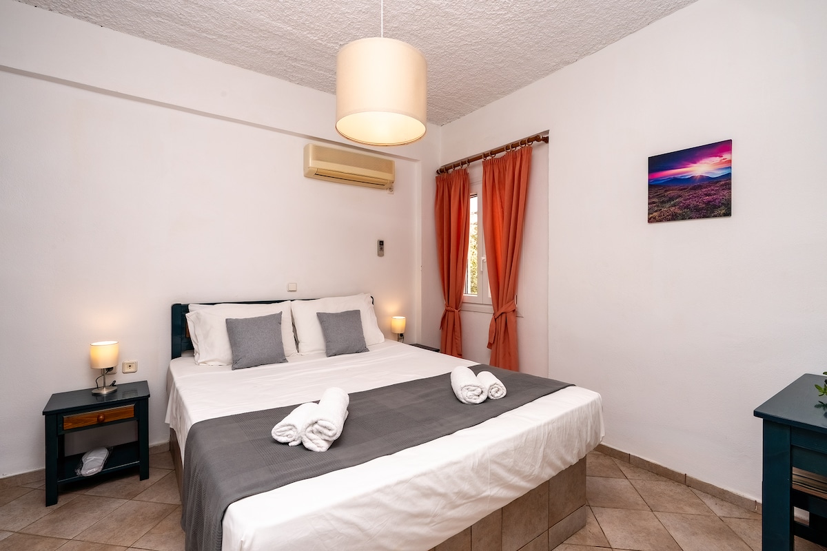 Uživajte v bivanju v apartmaju Eutopia Executive Suite, popolnem prenočišču za družine in skupine do 5 gostov. Apartma ima dve spalnici z zakonskimi posteljami, udoben raztegljiv kavč v dnevnem prostoru in dve zasebni kopalnici s prhami,kar zagotavlja popolno udobje in zasebnost. Prostorna terasa ponuja osupljiv panoramski razgled na morje, zaradi česar je popoln kraj za uživanje v zajtrku ali sprostitev ob sončnem zahodu. Idealna izbira za tiste, ki iščejo mir,sprostitev in nepozabne trenutke!