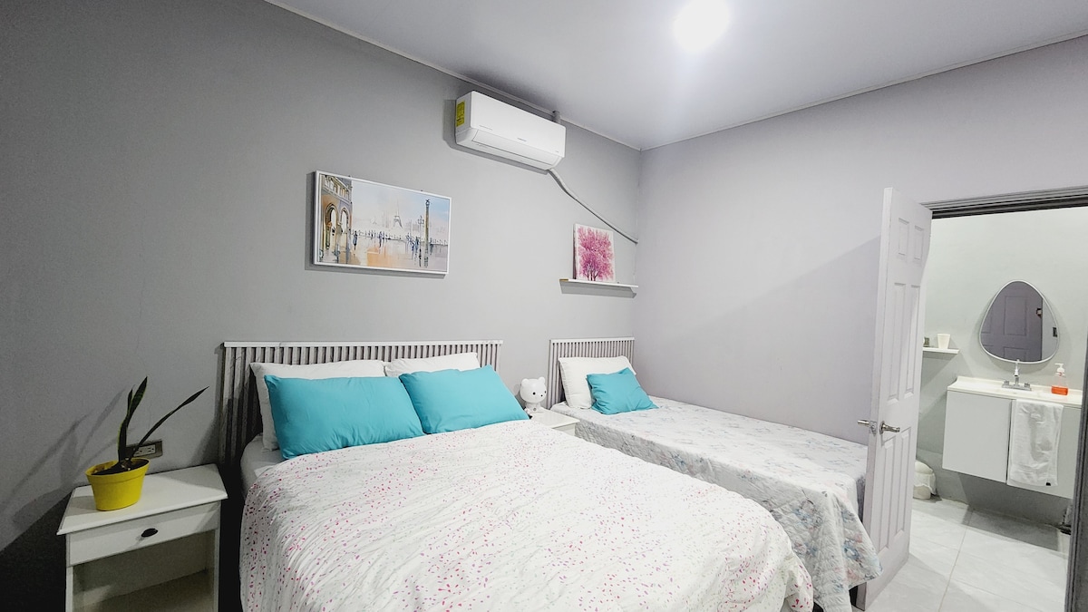 Popolnoma nova, udobna in sodobna lastniška stanovanja. V celoti opremljen za vaše poslovno ali družinsko bivanje. Vključuje opremljeno kuhinjo, toplo vodo, klimatsko napravo, stropni ventilator in opremo bano. Ima dve spalnici, ki sprejmeta 3 osebe, in raztegljiv kavč v dnevni sobi. Pralnica ter varno in brezplačno parkiranje. Ima tudi 24-urni sistem nadzornih kamer, električno ograjo in samodejna vrata.
