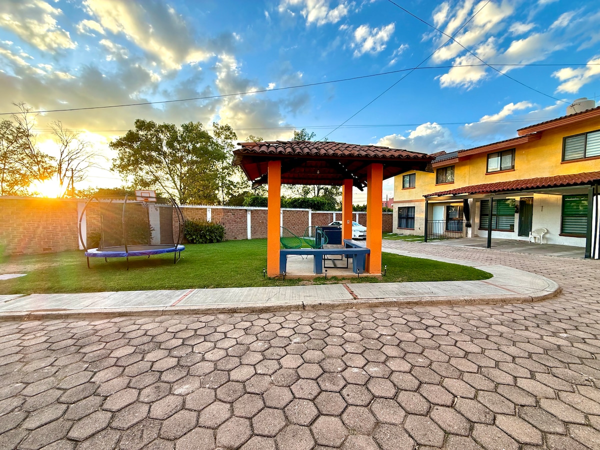 Prostorna urejena hiša z vsem udobjem za odlično bivanje. V pritličju je oprema; nogometno igrišče, žar, palapa, kopalnice, prhe, garderobe, bazen, parna, temazcal, vrtovi in dostop za vozila. V zgornjem nadstropju boste našli prostor za počitek s prostranimi sobami, kopalnicami, jedilnico in popolnoma opremljeno kuhinjsko nišo s čudovitim pogledom na zelene površine, ki ga obdajajo. Ne da bi šli tako daleč od mesta, boste zagotovo uživali v njem. Čakamo na vas.