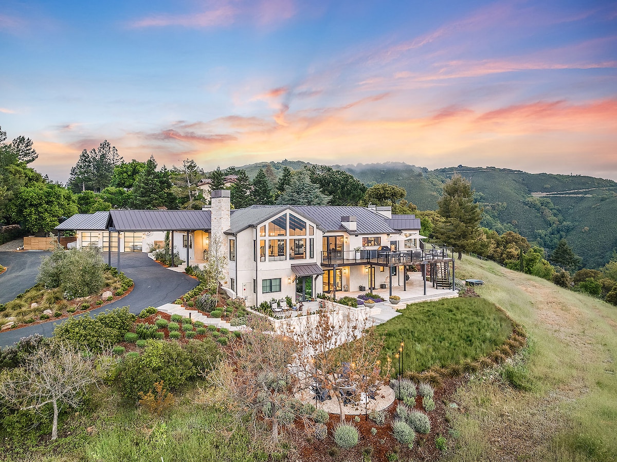 Set in the Santa Cruz Mountain Foothills, one mile below the world famous Ridge Vineyards, this luxurious vineyard villa is decorated with soaring mountain views, lush greenery, and mature trees. The lagoon-style pool and hot tub feels like a truly private oasis; kids will love playing under the waterfalls and on the slide. Enjoy dining alfresco with the outdoor kitchen while taking in the sunset on one of the many decks. Inside you'll have various spaces to gather including a media/game room.