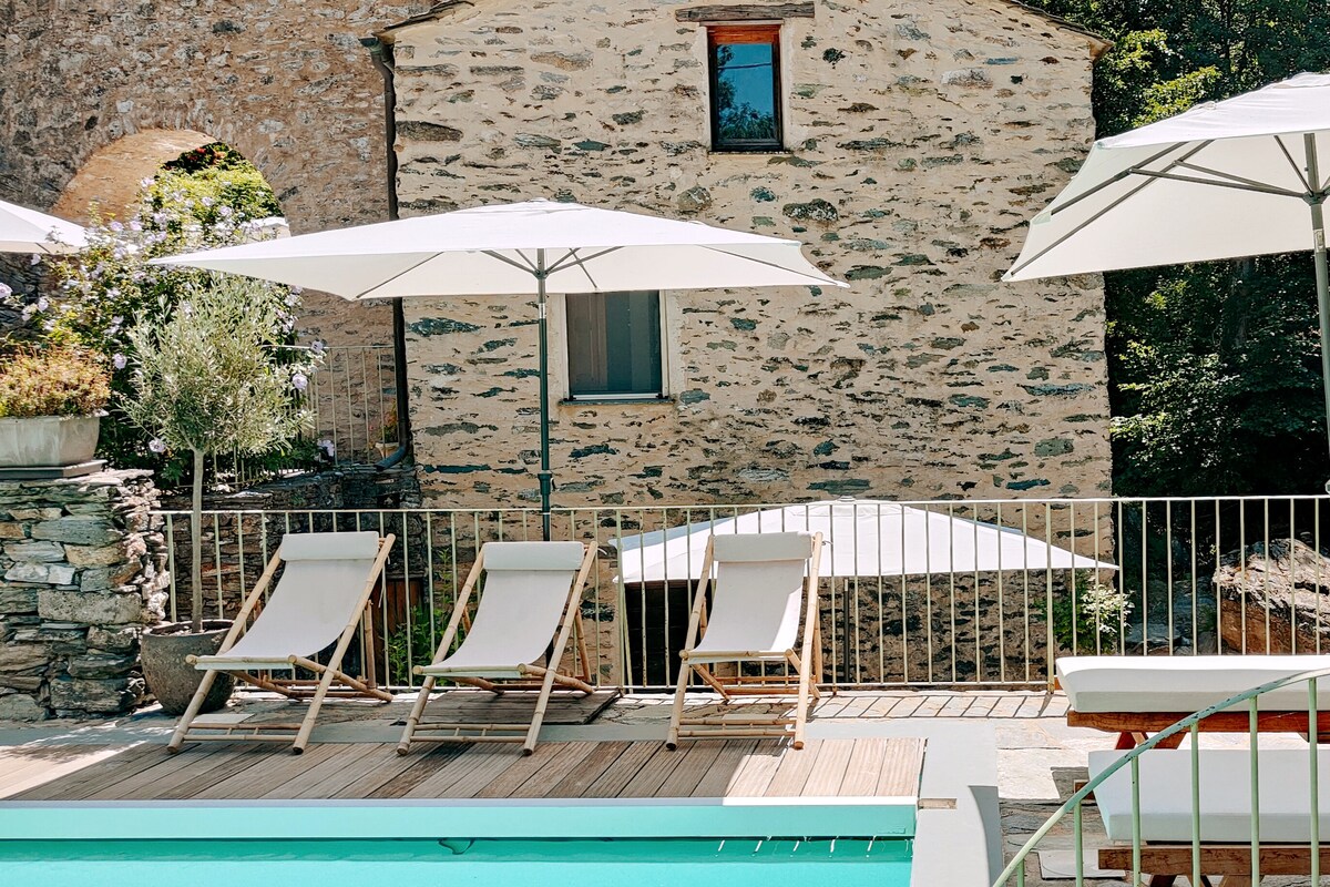 Ressourcez vous dans cette maison de caractère qui a été rénovée dans le respect de l'existant : pierres, châtaignier et lauze. vous séjournerez au cœur d’un authentique village Corse. À votre disposition dans un espace dédié privatif, un magnifique bassin intérieur en pierre, chauffé, et une tisanerie, ou vous pourrez réserver des massages. Équipé de 2 cheminées et de la climatisation, il est agréable à vivre en toutes saisons, pour un séjour de découvertes ou pour un week-end en amoureux.